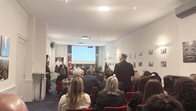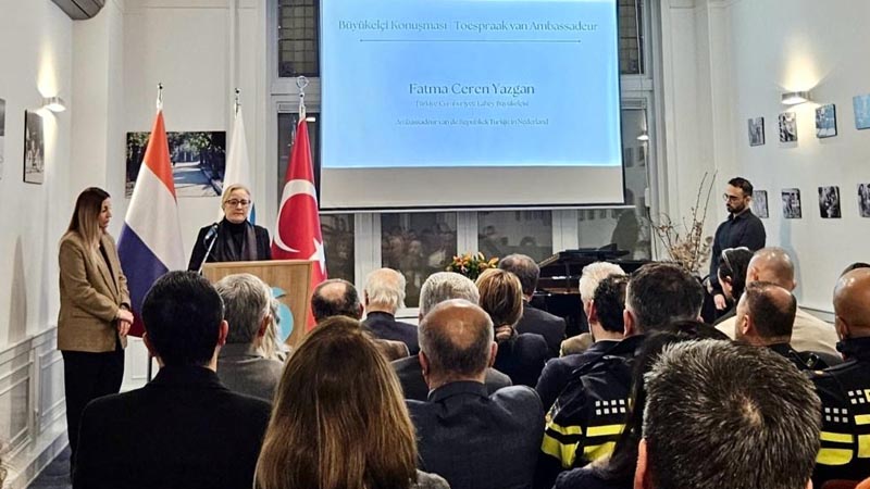 Vervolgens sprak de Turkse ambassadeur in Nederland, Fatma Ceren Yazgan. In haar toespraak sprak zij haar dank uit aan de Nederlandse autoriteiten, de Turks-Nederlandse gemeenschap en de Nederlandse bevolking voor de solidariteit en steun die direct na de ramp werd getoond.