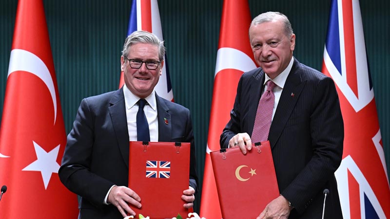 Tijdens het bezoek van de Britse premier Keir Starmer aan Ankara is naast de Turkse aanschaf van Eurofighter-gevechtsvliegtuigen en bilaterale zaken ook de situatie in Gaza besproken. De Turkse president Recep Tayyip Erdoğan feliciteerde Starmer met het besluit van het Verenigd Koninkrijk (VK) om de Palestijnse staat te erkennen en noemde dit een “moedige stap” op weg naar een tweestatenoplossing.