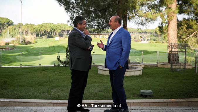 Gabriel is verwelkomd door zijn Turkse collega Mevlüt Çavuşoğlu.