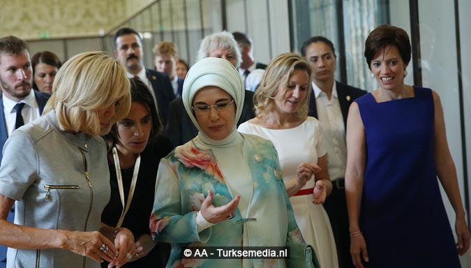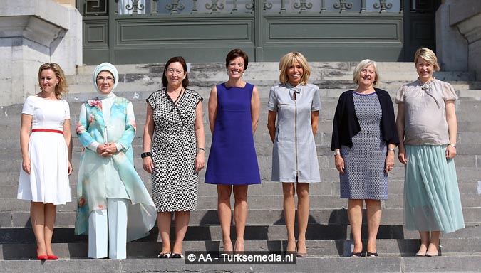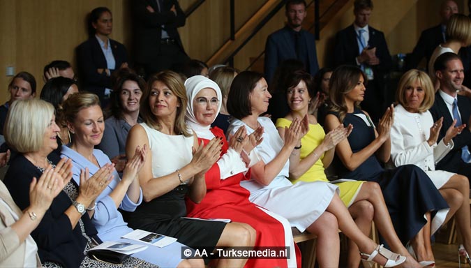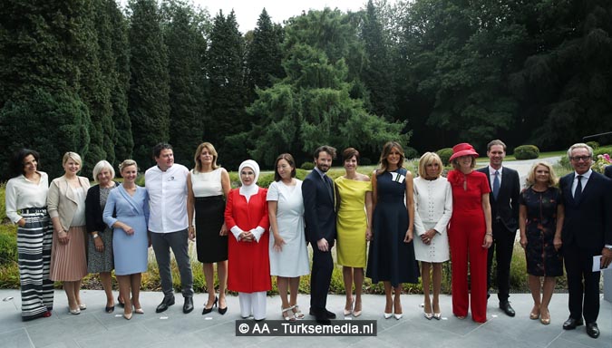 First lady Turkije op de foto met echtgenotes van wereldleiders