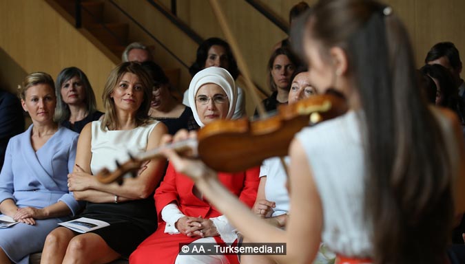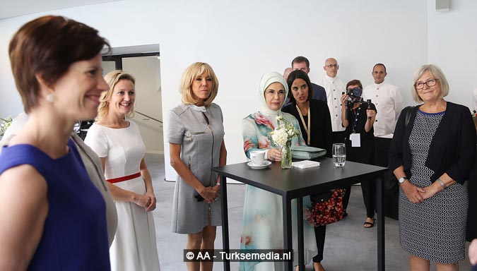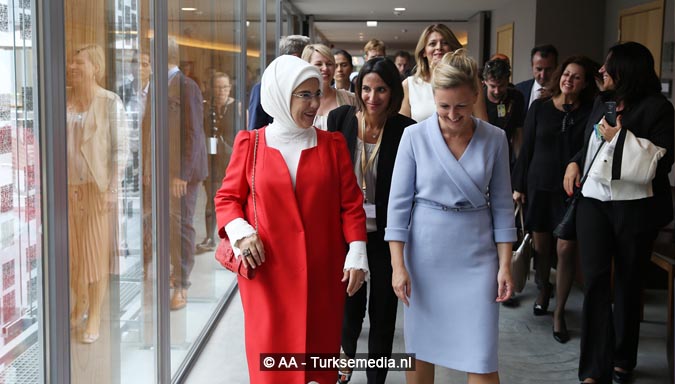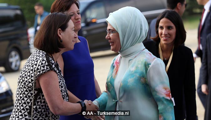De Turkse first lady is persoonlijk gefeliciteerd door alle vrouwen voor de verkiezingswinst van haar man. Ze kreeg veel aandacht en nam deel aan diverse activiteiten en rondleidingen.