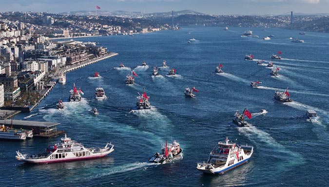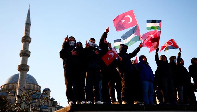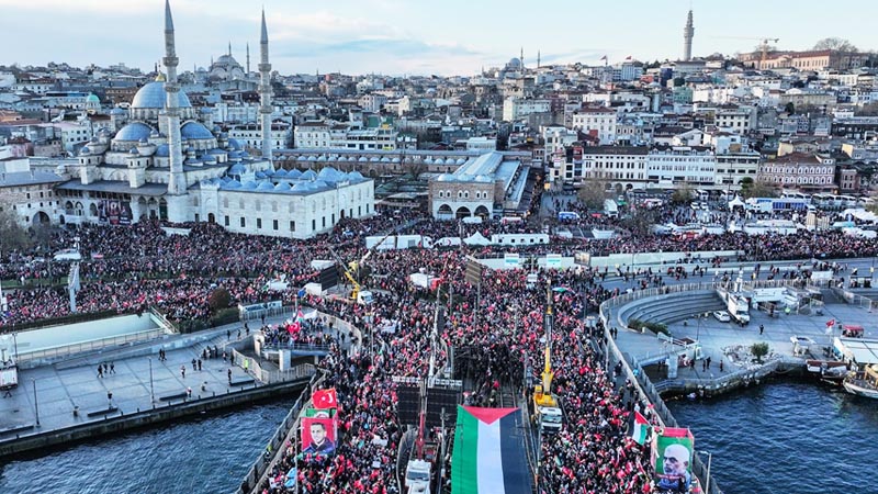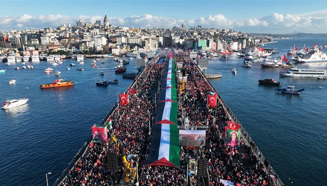 In Istanbul hebben op nieuwjaarsdag naar schatting 520.000 mensen deelgenomen aan een grootschalige mars ter ondersteuning van Palestina. De bijeenkomst vond in de vroege ochtend plaats op de Galatabrug en werd georganiseerd onder de vlag van de Alliantie van de Mensheid en het Platform Nationale Wil.