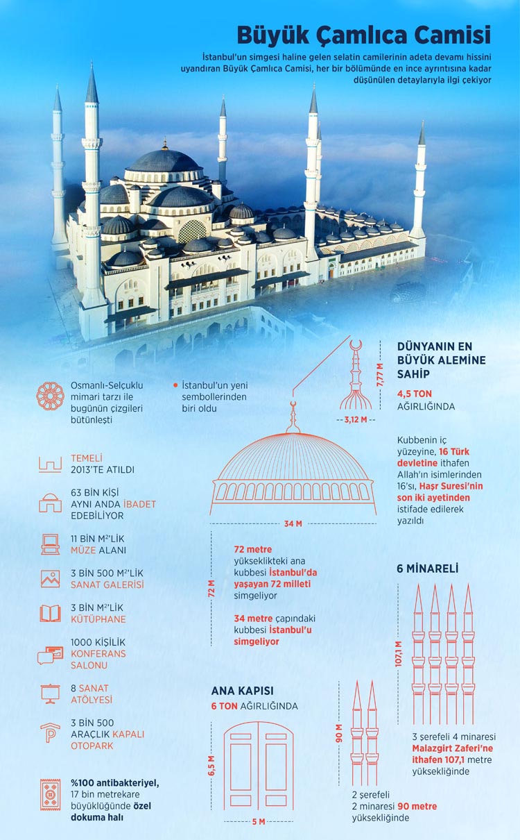 De gigantische moskee, waarvan het idee toebehoort aan de Turkse president Recep Tayyip Erdoğan en wiens fundament werd gelegd op 7 augustus 2013 op de iconische Çamlıca-heuvel van Istanbul, heeft een combinatie van Ottomaanse en Seltsjoekse architectuur en bevindt zich aan de Aziatische kant van Istanbul. Het is een van de symbolen van de metropool geworden.