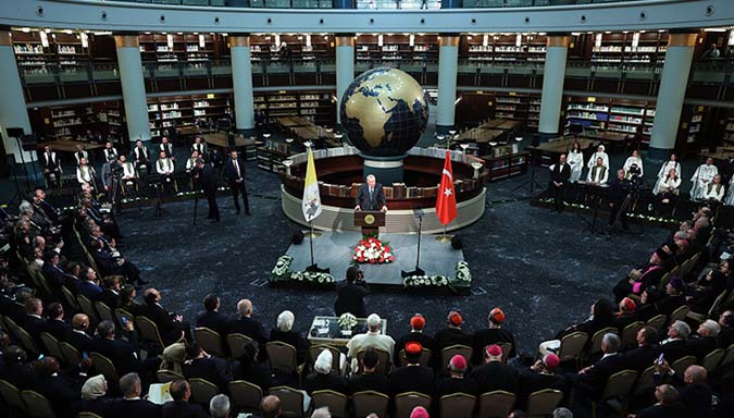 De paus sprak de hoop uit dat Turkije zijn rol als stabiliserende kracht in de regio blijft vervullen. Hij verwees naar eerdere bezoeken van vier andere pausen, Paulus VI, Johannes Paulus II, Benedictus XVI en Franciscus, als aanwijzing voor het duurzame belang dat de Heilige Stoel hecht aan samenwerking met Turkije. Het land vormt volgens hem een sleutelpositie tussen Oost en West, tussen Azië en Europa, en tussen culturen en religies.