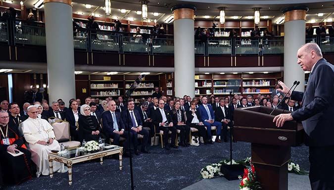 Het feit dat de paus zijn allereerste buitenlandse reis naar Turkije uitvoert is geen toeval. De Turkse president noemde het pausbezoek een keerpunt voor wereldvrede, “nu de mensheid in gevaar is door hoogoplopende conflicten en pogingen [van machtige lobby’s en kwaadaardige sektes die boven landen staan en waartegen meerdere regeringsleiders ook strijden] om de gezinscultuur te doen vernietigen”. (LEES meer)
