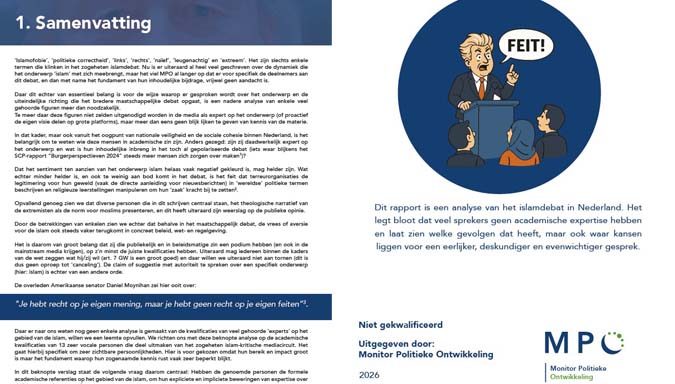 Dat concludeert Monitor Politieke Ontwikkeling (MPO) in een recent verschenen rapport ‘Niet gekwalificeerd – De ontsluiering van veel gehoorde pseudo-experts in het Islamdebat.’