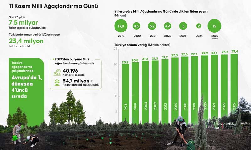 Volgens een recent rapport van de VN-voedsel- en landbouworganisatie (FAO), dat de gegevens van de Wereldwijde Bosbronnenbeoordeling verzamelde, heeft Turkije zijn bosbedekking met 0,53 procent per jaar weten te verhogen. Dit resultaat plaatst het land wereldwijd op de vierde plaats, na China, dat de wereldwijde leiding heeft met een jaarlijkse toename van 1,6 miljoen hectare.