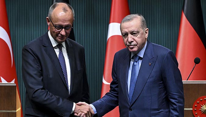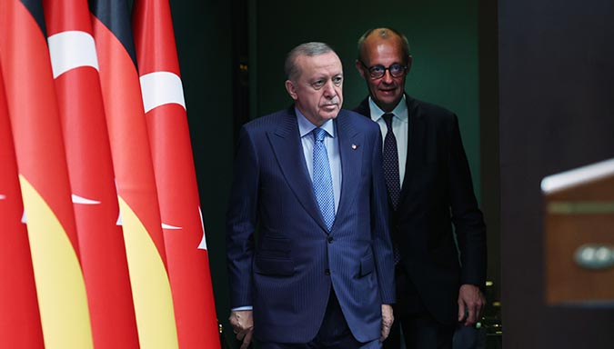 Erdoğan benadrukte dat hij Merz zijn verwachtingen heeft overgebracht om nieuwe wreedheden in Gaza te voorkomen en herhaalde dat een tweestatenoplossing de enige weg is naar duurzame vrede. “Net zoals we willen dat de oorlog tussen Rusland en Oekraïne eindigt, steunen we ook een einde aan de oorlog van Israël tegen Gaza. Turkije en Duitsland zijn twee sleutelstaten die de handen ineen kunnen slaan om dit te bereiken.”