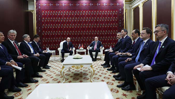 De ontmoeting vond plaats aan de zijlijn van het International Peace and Trust Forum in de Turkmeense hoofdstad Asjchabad. Erdoğan en Putin spraken daar over bilaterale betrekkingen en over bredere inspanningen om het conflict tussen Moskou en Kyiv te beëindigen. De Turkse leider stelde dat “een rechtvaardige en duurzame vrede van grote waarde is” en dat vooruitgang mogelijk is op terreinen die beide partijen praktische voordelen bieden.