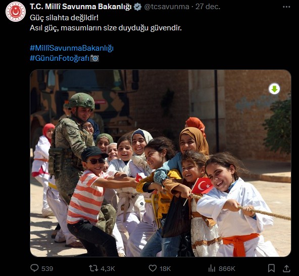 Ankara reageerde daarop met een boodschap waarin het belang van maatschappelijk vertrouwen boven militair vertoon werd geplaatst. In de Turkse publicatie werd met beeld en korte tekst de nadruk gelegd op de kracht en paraatheid van de Turkse strijdkrachten.