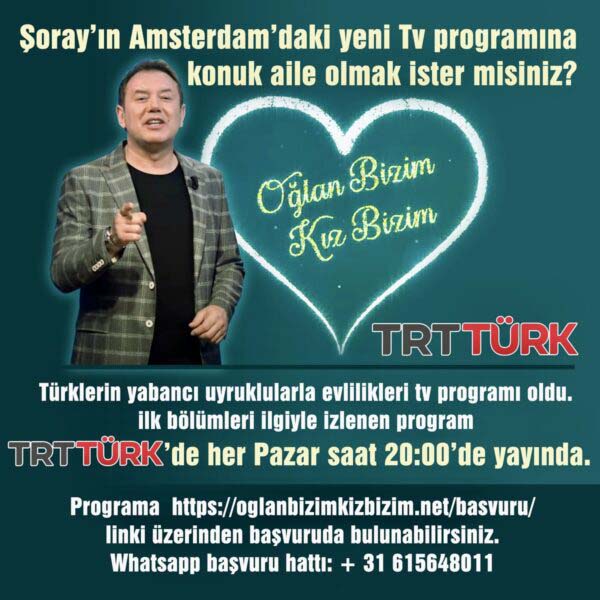 De Turkse omroep voor Europa TRT TÜRK biedt gemengde stellen de kans in een tv-programma hun verhaal te doen. De bekende Turkse cabaretier Şoray ontvangt de gasten in een studio in Amsterdam voor de talkshow.