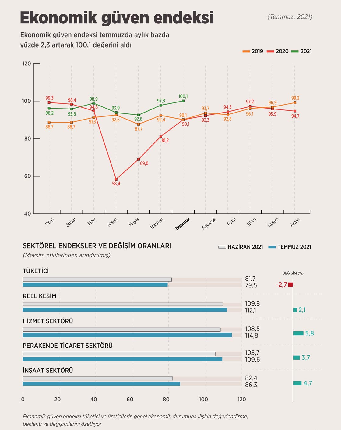 De economische vertrouwensindex van Turkije is in juli met 2,3 procent toegenomen.